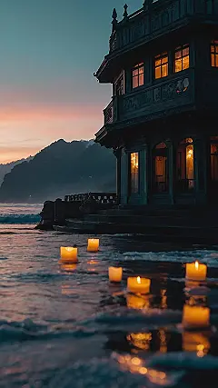 But what makes this picture extra special is the line of candles floating in the water. They look like little boats, bobbing along on the current. It’s like a magical moment captured in time, a reminder that even in the quietest places, there’s always something beautiful waiting to be discovered.