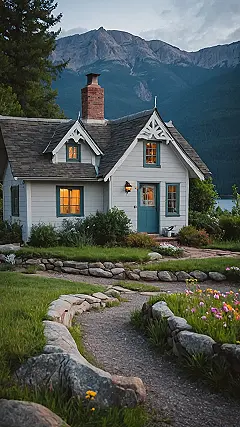 This house looks like something straight out of a fairytale! The stone walls, the cute little windows, and the warm glow coming from inside make it feel like a place where magic might happen. It’s so charming, you almost expect to see a friendly gnome pop out from behind the bushes and offer you a cup of tea.