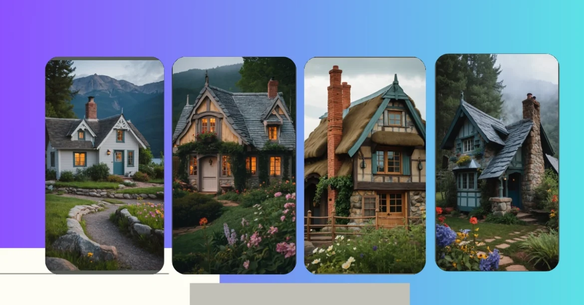 The little cottage sits happily amidst greenery, with plants blooming in pots around its welcoming porch. It seems like the perfect place to escape the hustle and bustle of modern life, relax with a good book, and dream of adventures. It’s the kind of place that makes you want to step inside, put on a cozy sweater, and let your imagination run wild!