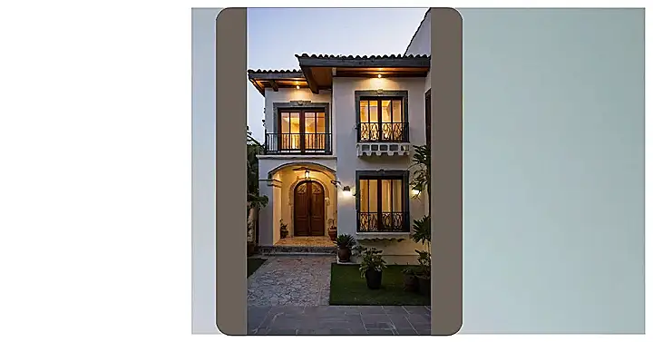 This house looks like it’s ready for a fiesta! With its cool white walls, curvy arches, and a red-tiled roof, it’s totally giving off Spanish vibes. Imagine chilling on that balcony with a refreshing glass of lemonade, feeling like you’re starring in your own Spanish movie. I wouldn’t be surprised if a mariachi band suddenly showed up!