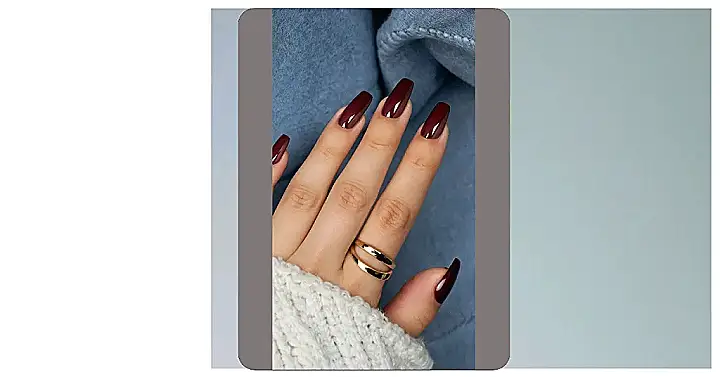 These nails are like a cozy sweater for your fingertips! They’re long and elegant, just like those fancy snowflakes you see on Christmas cards. The deep, rich burgundy color is perfect for the holidays, making your hands look like they’re ready to sip hot chocolate by the fireplace (even if it’s actually just a warm cup of tea on a Tuesday afternoon).