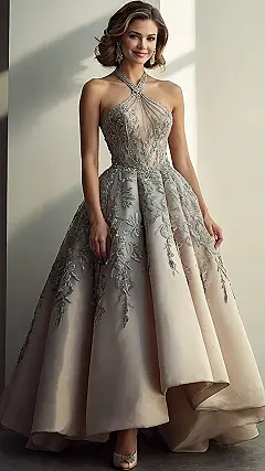 Seriously, check out that halter neckline! It’s super chic and shows off your shoulders in the most flattering way. The whole dress is the perfect mix of sophisticated and fun – fancy enough for a special occasion, but comfortable enough to actually *move* in. You could rock this at prom, a wedding, or even a super-extra birthday party. Just picture it: you, in this gorgeous gown, feeling amazing, and ready to conquer the world (or at least, the dance floor).