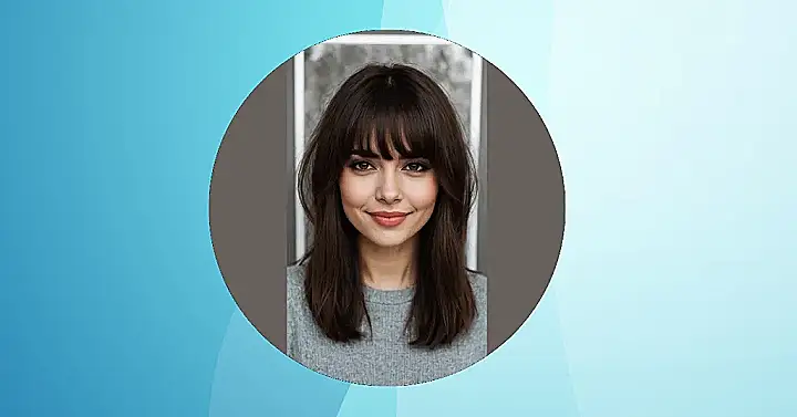 Plus, with bangs this good, who needs a complex accessory? They’re practically an outfit all on their own! Her bright smile perfectly complements her chic bangs, giving off major ‘I’ve got this’ energy, whether ‘this’ is acing a presentation or just finding the last slice of pizza. It’s funny how a simple haircut can totally transform your mood and make you feel extra confident, sometimes even making you want to peek playfully from behind your fringe. This look shows that sometimes, all you need is a fantastic bangs haircut and a genuine grin to light up any room!