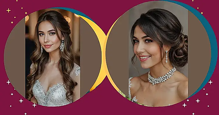 It’s all about that front look for gown or lehenga perfection! The right hairstyle should enhance your outfit; think of something chic that highlights your shoulders, making sure the dupatta on head flows beautifully as you move. A low chignon could provide that elegant touch while being a practical solution to withstand any joyful dance moves throughout the night!