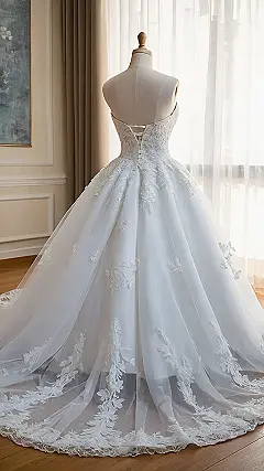 The detail on the dress is seriously impressive, it looks like someone spent forever adding all those fancy details. That’s some serious dedication. You know, if Cinderella had this dress, she definitely wouldn’t have left a shoe behind. She’d be too busy showing it off with her new outfit!