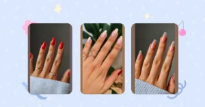 Whoa, check out the different styles! One’s all glossy and smooth, another has a cute little sparkly line, and then there’s the one with the blinged-out bow, they really scream “I’m creative and I know how to accessorize!”. Now, I’m picturing all the cool outfits these nails would match perfectly, like maybe a leather jacket and ripped jeans or a fancy dress for a night out. Whatever you wear, these nails will make it 10x cooler!