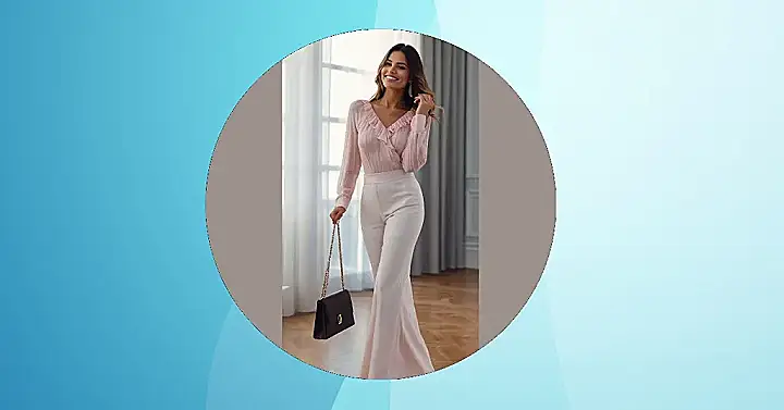 The flowy shirt is totally chic, and those bell-bottom pants add a touch of retro cool. Pair it with a black bag like the one shown (because opposites attract, right?) and you’ve got an outfit perfect for a fancy date, a casual brunch, or even just impressing your friends. Basically, it’s the kind of outfit that screams, “I woke up like this… but put way more effort in.”