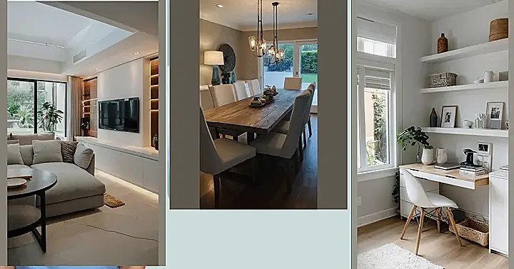 This living room is seriously giving us major “I wanna chill here forever” vibes. It’s like the ultimate mix of comfy and stylish. The giant, fluffy sectional sofa is the star of the show, just begging you to sink into its soft embrace. But it’s not just all about the couch—those cool, modern window dividers add a touch of sophistication, and that sleek coffee table looks like it’s straight out of a design magazine. We’re pretty sure this room would make any grade 9 student want to ditch their homework and just hang out!