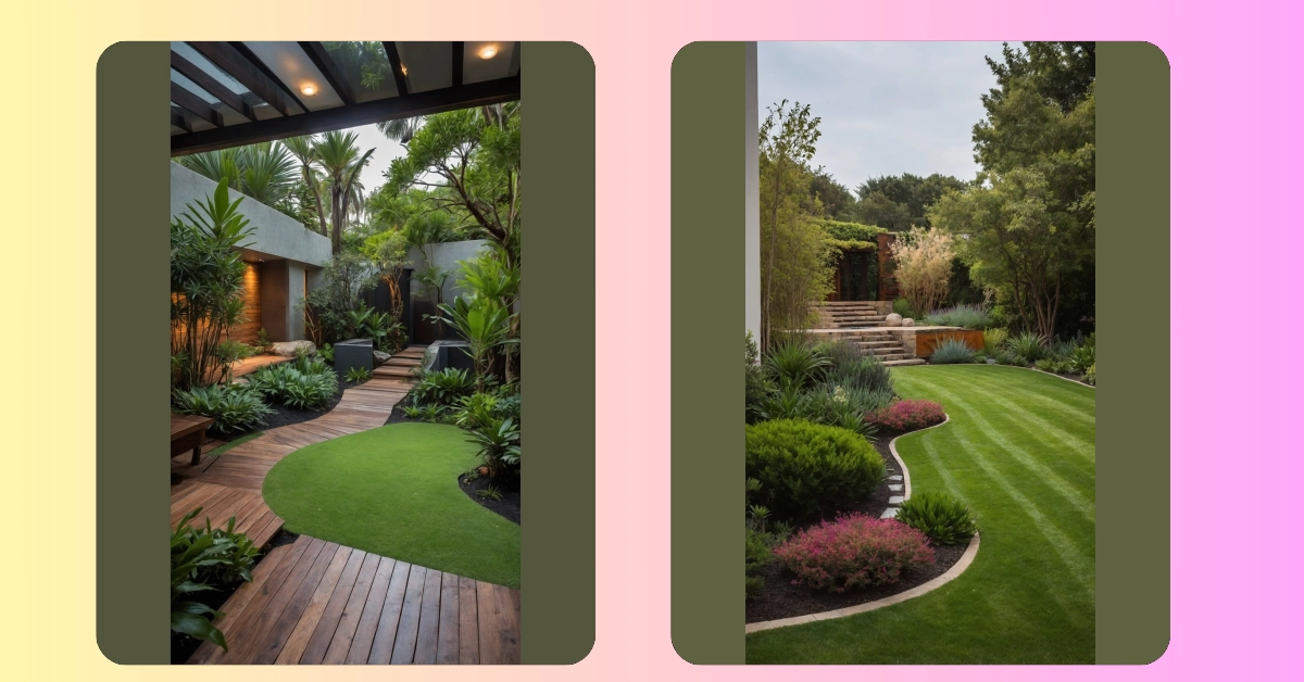 Forget about needing a sprawling estate; this garden is living proof that big dreams can fit into small spaces, even ones smaller than your average classroom. This design takes what could have been a forgotten corner – perhaps a sad spot for rogue dust bunnies or where socks went to retire – and transforms it into a total vibe. With its perfectly manicured grass, those cool stepping stones, and even a cozy bench, it’s basically an invitation to chill, read a book, or just admire how much awesome can be packed into a compact area. It’s like magic, but with more plants and fewer rabbits in hats.