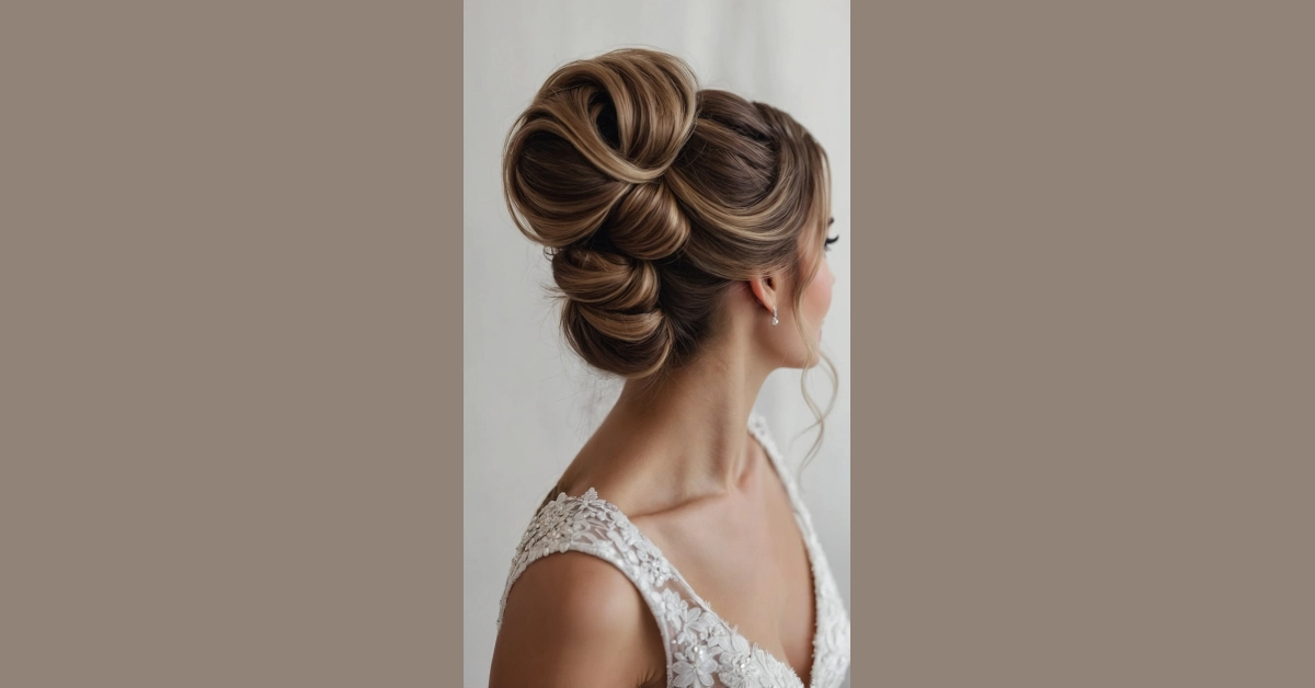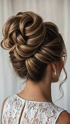 This isn’t just a hairstyle; it’s practically a work of art! Seriously, check out all those gorgeous soft twists and bouncy curls, all wrapped up into what we like to call the “I Woke Up Like This, But Better” soft French twist. Those blonde highlights peeking out from the rich brown hair just make the whole thing pop, looking like your hair decided to go on its own fabulous vacation before the big wedding day. It’s so effortlessly elegant, it almost makes you want to ask it for beauty tips – how does it stay so perfectly put together?