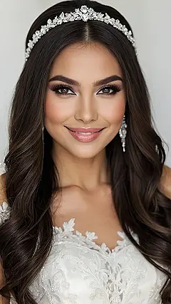 Seriously though, this picture totally shows how a simple, classic hairstyle can be absolutely stunning. You don’t need crazy updos or rainbow streaks to look amazing; sometimes, letting your hair do its thing, adding a touch of elegance, and accessorizing with some bling is all you need. It makes you look elegant and sophisticated without being too fussy – basically, the ultimate chill bride vibe!