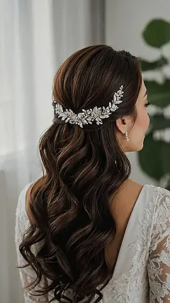 Imagine this: You’re walking down the aisle, looking like a total princess with your long, flowing hair. But let’s be real, you don’t want a super-complicated hairstyle that looks like it took hours to create. You just want something simple, elegant, and maybe a little bit of a “wow” factor. That’s exactly what this hairstyle is all about! It’s like a simple twist at the crown, but the loose curls flowing down your back make you feel like a total goddess. And the best part? It’s actually super easy to recreate, so you can rock this look without stressing out about your hair on your big day!