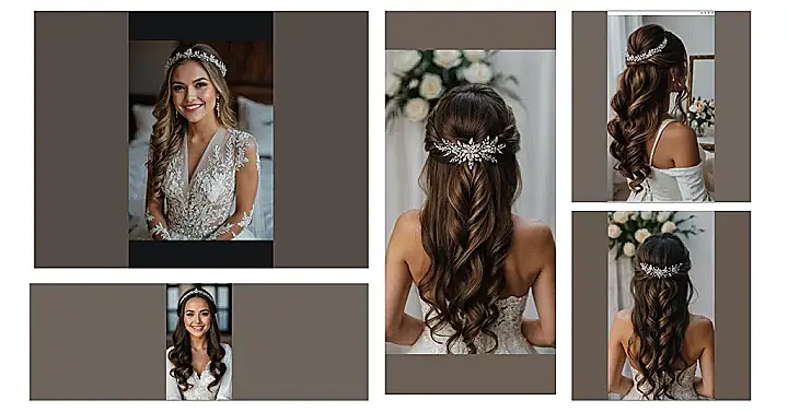 Who knew hair could look this majestic? This isn’t just a hairstyle; it’s a hair *statement*, making every strand perfectly styled in that gorgeous half-up, half-down look. You can practically hear it whispering, “I woke up like this, but also, I had a professional stylist work magic for three hours.” And let’s not forget that dazzling hair clip, sparkling brighter than a disco ball at the prom. It’s definitely giving major classic bridal vibes, proving some looks never go out of style, even if your fashion sense changes every Tuesday.