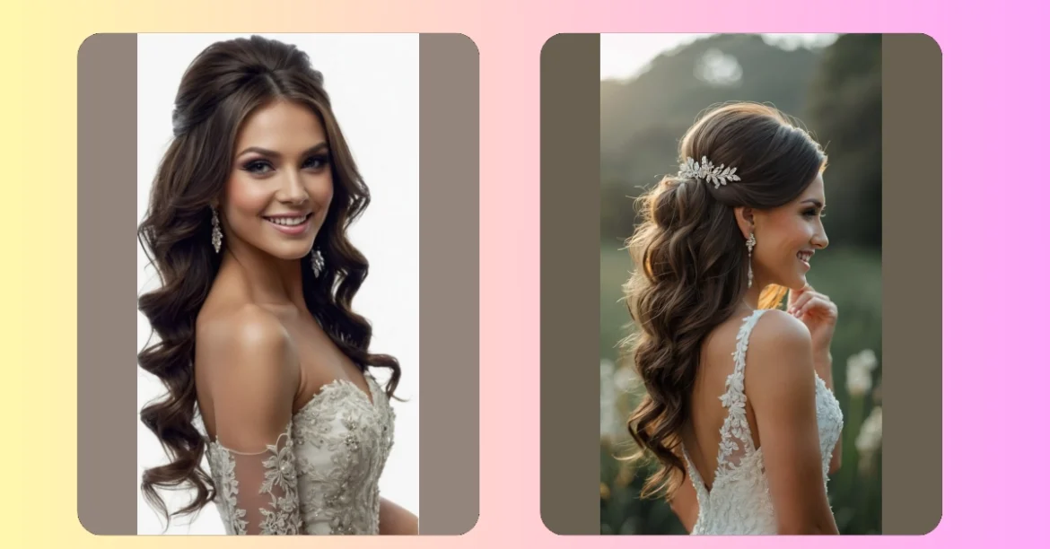 This hairstyle is seriously dreamy! Imagine walking down the aisle with your hair looking like this – totally effortless, yet elegant and totally you! It’s all about those loose, flowing waves and a sparkly little hair clip that adds just the right amount of bling. And let’s be honest, who doesn’t love a little bling on their big day?