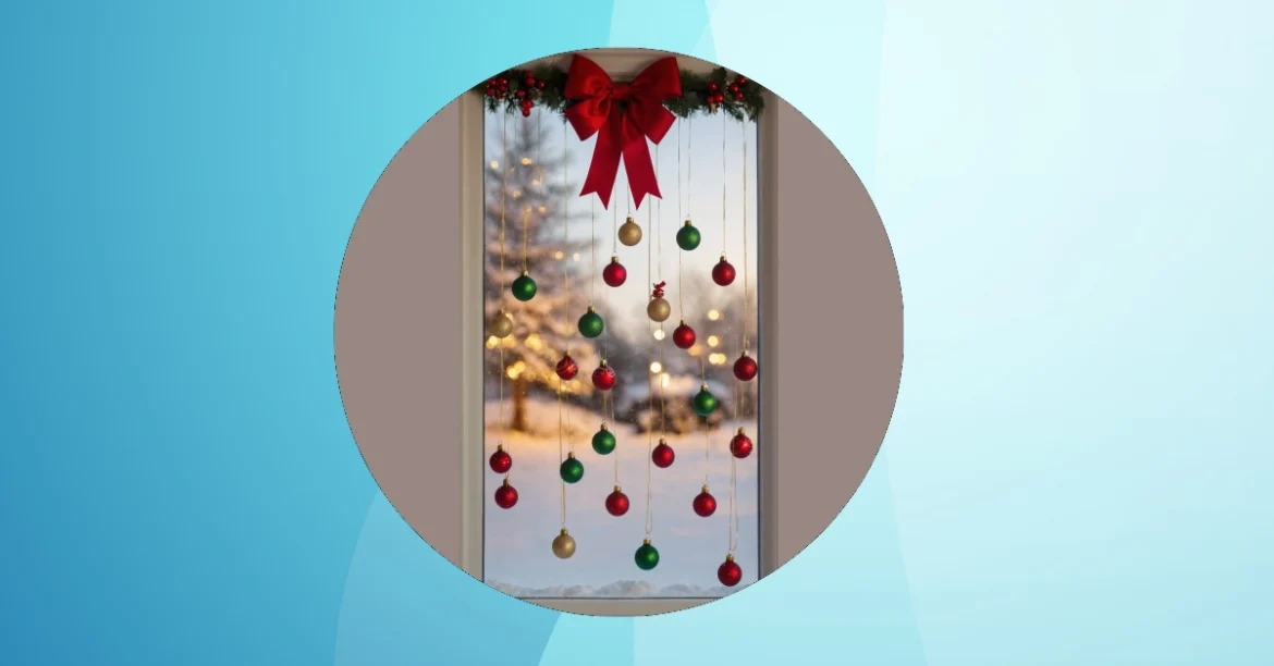 Strolling up to this window, you might catch those sparkly ornaments having their own little hanging party, all dressed up in shimmering red, green, and gold. They’re practically waving hello to everyone outside, shouting, ‘Christmas is here!’ That big, sassy red bow at the top is definitely the headliner, making sure these festive window decorations get all the attention they deserve. It turns an ordinary pane of glass into a dazzling winter wonderland, proving your home can host just as much holiday bling as any fancy art gallery.
