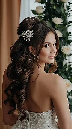 This hairstyle is totally giving off summer vibes – like you’re about to star in a music video, or maybe just chill at a fancy beach party! The waves are so smooth and shiny, they’re like a chocolate river of awesomeness, and that clip? Totally bedazzled! It’s like sunshine in your hair, ready to make any summer day a little bit brighter.