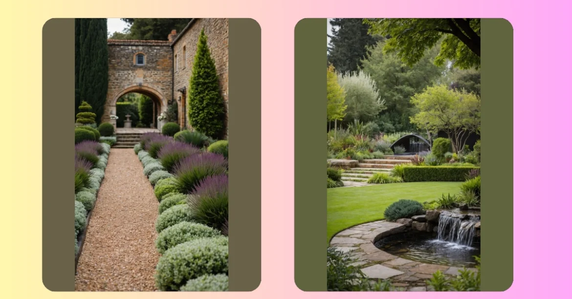 This garden looks like it stepped right out of a “how to be perfectly zen” manual, or maybe it’s just really good at pretending. Seriously, look at those perfectly rounded bushes and that ridiculously green grass – it’s so pristine, you almost expect little garden gnomes in tiny uniforms to be doing daily inspections with clipboards. It’s the kind of dreamy home garden where every leaf is probably polished, and even the bugs have to wipe their feet before entering. You can practically hear it whispering, “Welcome to perfection, please don’t mess it up!” It definitely screams “relax here,” but also “don’t even *think* about kicking a soccer ball.”