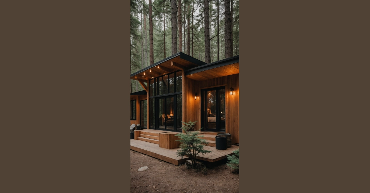 Stepping inside this place would probably feel like walking into your favorite comfy hoodie, but way fancier. Out front, you’ve got those perfect little steps inviting you in, and even a neat stack of firewood just begging for a s’mores night. The warm glow from inside suggests a serious upgrade from roughing it; maybe a heated floor, or at least enough outlets for all your chargers. It’s a place where you could totally impress your friends with a ‘wilderness’ adventure that still includes a spotless kitchen and probably a fancy coffee maker. Forget surviving in the wild; here, you’re thriving in modern comfort while still getting those epic forest views.
