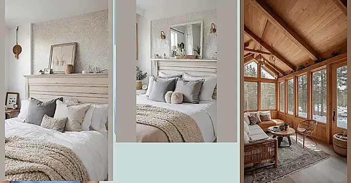 Stepping into this lake house bedroom feels like getting a giant, soft hug after a long day of pretending to wakeboard (or, let’s be real, just scrolling TikTok). The distressed white headboard looks like it’s got stories from a hundred sunsets over the water, and those chunky knit blankets are practically begging you to ditch your phone and just curl up. With all those comfy grey pillows and those two super fluffy round ones, it’s pretty much a soft landing zone for your brain, no matter how much homework you have.