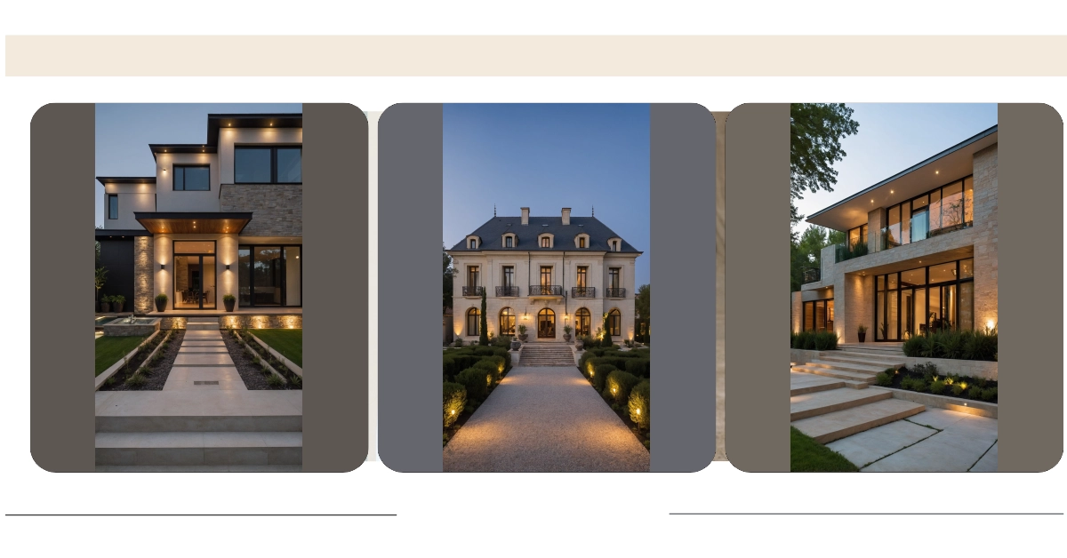 This isn’t just any old house; it’s like a designer took all the best parts of old-school European architecture and gave it a fresh, modern twist. The path leading up to the door is perfectly paved and lit up like a runway, so you can make a grand entrance even if you’re just bringing home groceries. And those perfectly trimmed bushes look like they got a fresh haircut just for the picture! Living in a place like this would be pretty awesome, though you’d probably need roller skates just to get from your bedroom to the kitchen for a midnight snack.