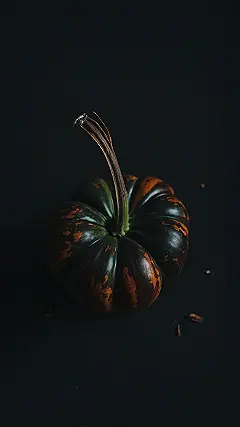Meet the squash that’s probably got a better reading list than you do! This little beauty is absolutely slaying the dark academia aesthetic, chilling in its deep green and rusty orange glory against a super moody black background. It looks like it just stepped out of a dusty university library, maybe after a serious debate on existentialism, and is now patiently waiting to inspire your next epic essay (or at least make your phone look way smarter). Forget those basic bright wallpapers; this gourd is here to prove that sophisticated vibes can also be deliciously dark and just a tiny bit dramatic.