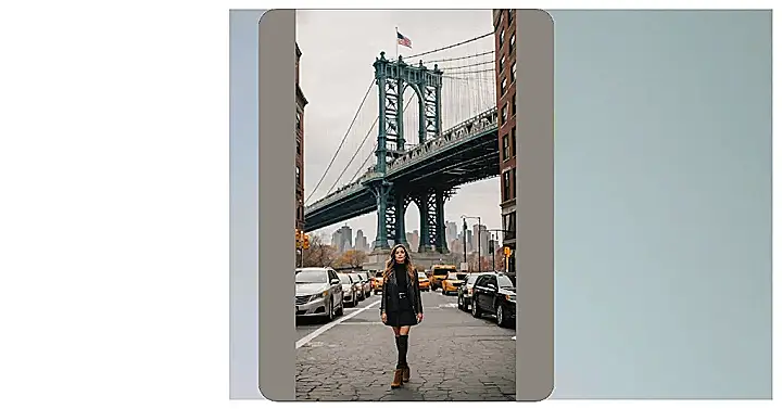Getting that perfect New York City photo isn’t always easy. You find a super cool spot like this, with the giant bridge looking all epic behind classic brick buildings, and you think, “Okay, time for my viral social media moment!” But then you remember you’re trying to look effortlessly cool on a busy street, maybe dodging a taxi or two, while someone tries to get your best angle. This person in the bright yellow dress makes it look easy though, just casually walking through the scene like they woke up knowing they were starring in today’s best New York photography shot.