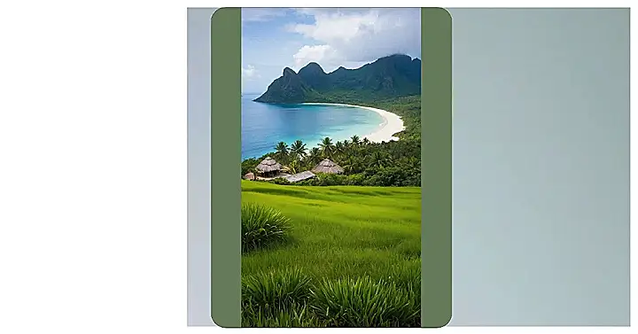 Just look at this postcard-perfect scene! It’s like someone asked an artist to draw the happiest place on Earth, then went and built it. You’ve got these ridiculously green fields leading your eye down to those adorable thatched huts, then past swaying palm trees to a beach so white it practically glows. And that water? It’s like a gradient of every blue and turquoise you’ve ever dreamed of, all backed by epic, misty mountains. This isn’t just a beautiful island; it’s basically calling your name to snap a million photos, even if your phone camera might just melt from trying to capture all that perfection.