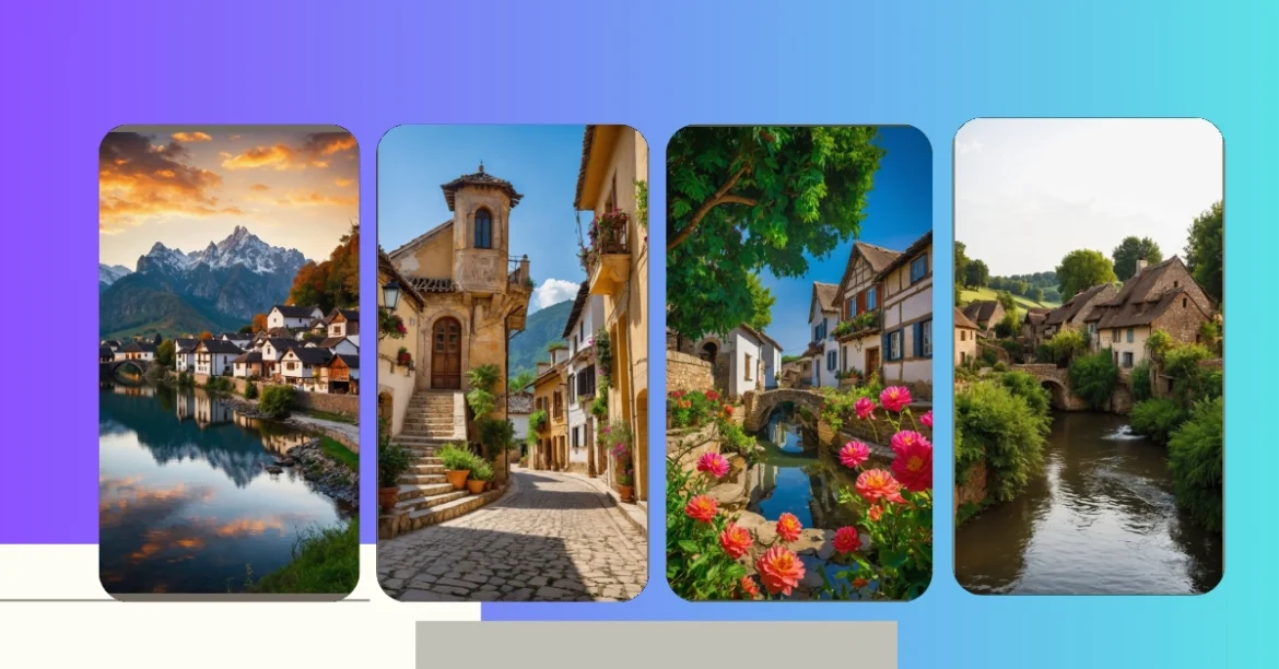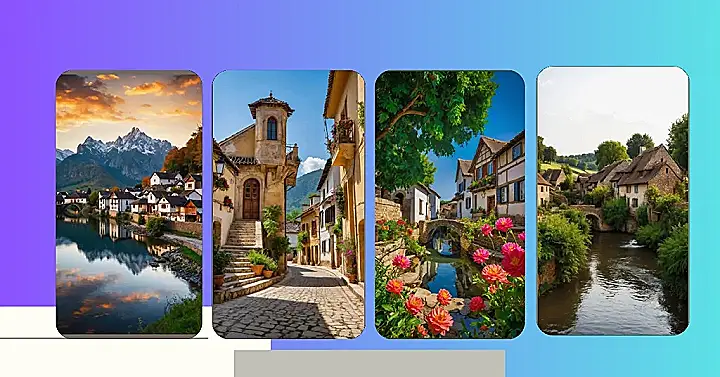 Looking at this photo makes me wonder if the water is actually sparkling, or if that’s just my eyes seeing all the awesome reflected light. It’s like every corner is posing for a picture, from the cute little stone bridge to the explosion of colorful flowers bursting with cheer. Capturing a village this gorgeous must be like hitting the jackpot for photographers – every click feels like a mini-masterpiece! You could probably just point your camera anywhere and end up with something totally frame-worthy. It just screams ‘beautiful village photography goals,’ right?