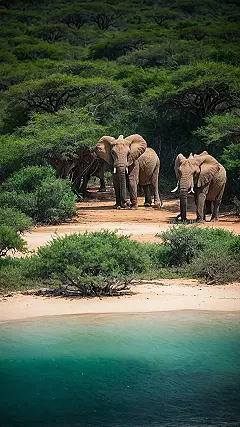 What’s cooler than seeing a herd of elephants looking perfectly at home in such a beautiful, wild setting? You’ve got the sandy beach ready for some colossal footprints, the incredible blue water sparkling, and a whole forest of green for them to munch on later. It’s like they’ve booked the best resort in Africa and are just taking it all in. This isn’t just a pretty picture; it’s a peek into a day in the life of some truly giant gentle souls, reminding us why capturing Africa’s nature is always an award-winning move.