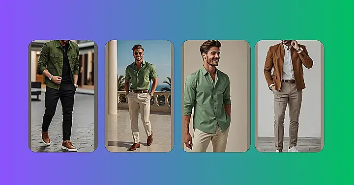 Looking at this guy, you might think he spent hours planning his awesome outfit, but surprise! It’s just a cool green shirt and some perfectly matched khaki pants. It’s like these two colors had a secret meeting and decided, “Let’s make someone look effortlessly stylish today.” He’s practically winking at us, saying, “Yeah, I woke up like this, looking this good, without even breaking a sweat trying to pick out clothes.” Who knew looking sharp could be so chill and still be totally on point for stylish men’s outfits?
