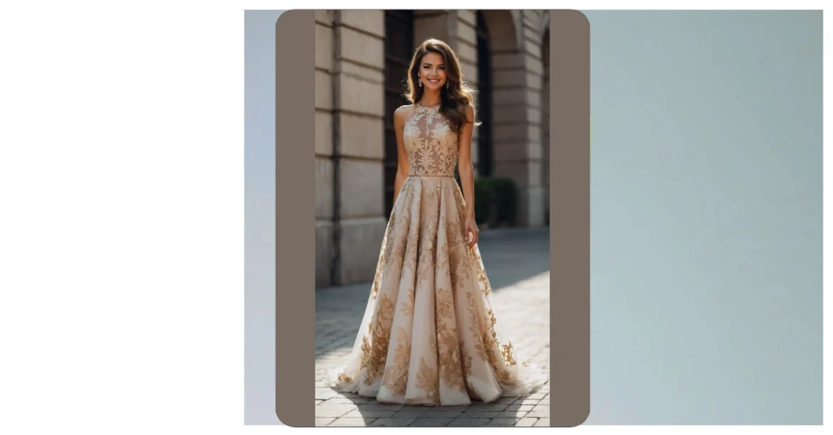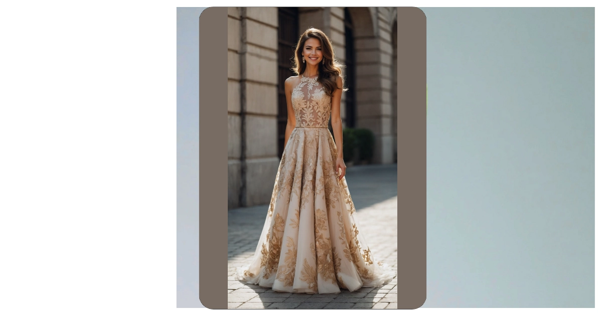 Talk about a showstopper! This latest wedding guest outfit is practically begging for a grand entrance. With its gorgeous champagne color and dazzling gold lace that looks like it’s been painted on, you’ll be the definition of elegant, whether you’re catching the bouquet or just catching a breath after a fierce dance-off. It’s got that fancy vibe that says, “Yes, I dressed up, and yes, I’m absolutely ready for the open bar… of sparkling cider, of course!” Just try not to accidentally get mistaken for a princess who’s wandered off her own royal duties.
