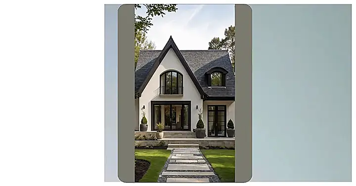 Just look at this place! It’s like a super chic European villa decided to get a modern makeover and absolutely nailed it. With that dramatic dark roof and those stylish black-framed windows, this house practically whispers ‘Bonjour!’ or ‘Ciao!’ before you even step inside. It’s got that classic old-world charm, especially with the adorable little balcony just begging for you to dramatically lean out and declare your love, but everything about it feels totally now and fresh, not dusty and antique. This isn’t your grandma’s European house, unless your grandma is secretly a super trendy architect.