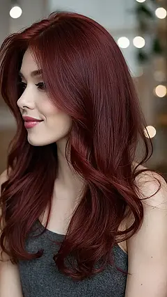 This hair color is like a delicious cherry cola, but for your hair! It’s a deep, rich red that’s super trendy and totally cool. Imagine yourself with shiny locks that have hints of brown and a hint of purple, kinda like those awesome sunset colors! It’s the perfect shade for anyone who wants to make a statement without going too over the top.