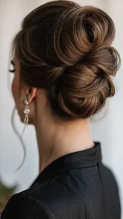 Who knew hair could look so effortlessly elegant while still being totally ready to party? This soft French twist is basically the VIP pass for your locks on a big day. Just check out those beautiful strands, perfectly swirled and tucked, showing off a gorgeous mix of browns and highlights without a single hair looking stressed. It’s not a tight, pull-your-face-back kind of updo; it’s got that cool, relaxed vibe that says, “Yes, I’m at a wedding, but also, my hair feels amazing and could probably survive a minor earthquake.”