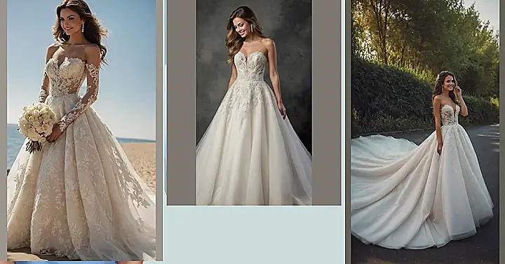 Wow, check out this stunning wedding gown! With all that beautiful lace and elegant design, it practically looks like something out of a fairy tale. But let’s be honest, that incredible train flowing behind her might need its own zip code! Walking in a dress that grand must be an Olympic sport in itself, especially trying to avoid stepping on it or getting tangled. You just know a dress like this is designed to make an entrance, and maybe cause a few gasps (the good kind, of course!).
