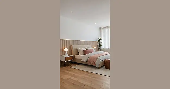 This bedroom is seriously goals! You know those rooms you see in magazines and think, “I wish I could live there?” Well, this one’s got it all: a dreamy bed with cozy blankets, super stylish lamps, and those cool wood panels on the wall. It’s like walking into a relaxing spa but with a bed for sleeping, which is way more practical.