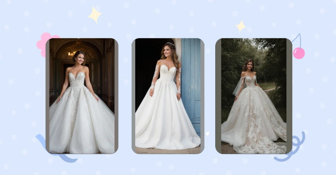 Staring at this dress, you can almost hear the wedding bells – or maybe just the sound of everyone saying “wow!” The top part with all that fancy lace is super pretty, and then check out that cool V-shaped waistline, often called a Basque waist. It’s like the dress is giving you a little hug and making you feel extra special, ready to float down the aisle feeling like royalty without all the stiff, old-fashioned stuff. Just try not to get too distracted by how awesome you look that you forget to say “I do!”