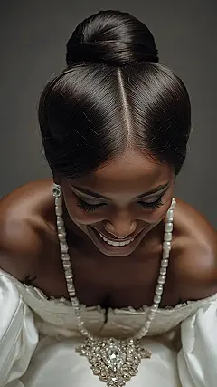 This picture shows a woman with a sleek, elegant hairstyle that’s perfect for a fancy event like a gala. It’s like her hair’s saying, “I’m here to shine and make a statement!” Those sparkling earrings are like the icing on the cake, adding a touch of sparkle and sophistication to her whole look. Seriously, if you’re trying to impress, this hairstyle is the way to go. It’s simple yet stylish, and it’s all about letting that natural beauty shine through.
