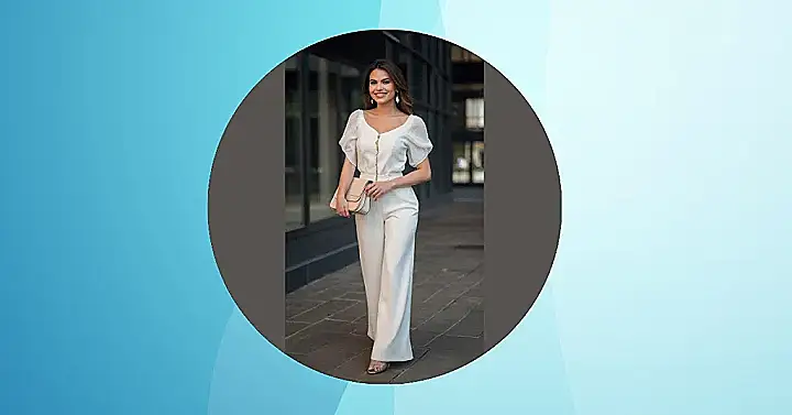 This outfit screams “sophisticated,” but without being stuffy! It’s like the coolest grandma you know decided to go clubbing – all sleek lines, a simple yet elegant white set, and those killer heels. It’s totally modern, yet the classic white color and simple design give off that “old money” vibe. Imagine yourself casually strolling through a chic art gallery, or maybe grabbing a fancy latte with your friends. This outfit would totally work for either!