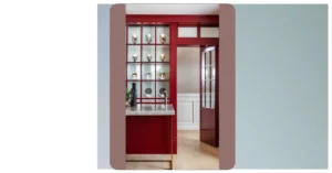 Check out the details, though! That coffee table looks like it has some cool stories, maybe even a secret compartment for beach snacks. The pops of blue on the pillows and vases are like little waves of style scattered around, making the whole place feel fancy but still totally laid-back. It’s the perfect mix of looking super put-together but also saying, “Yeah, come in, kick back, maybe just don’t track in actual seaweed.” This is coastal living leveled up, where flip-flops are optional but feeling instantly calm is not.