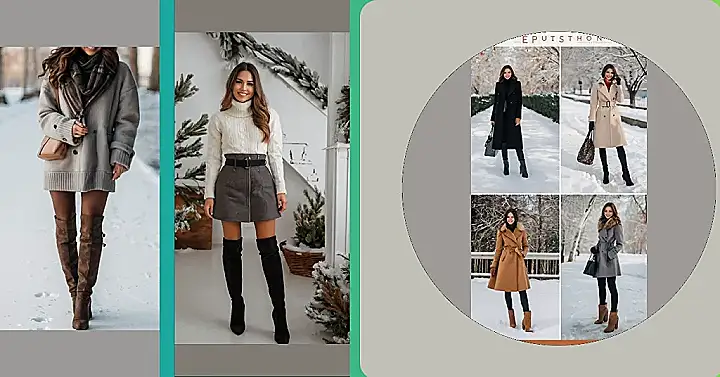 And get this – they’ve mastered the art of winter boot game! From knee-high brown suede to sleek grey over-the-knee boots, they’re showing off that even your footwear can make a statement in the snow. It’s like a winter fashion show, and these ladies are totally acing it! Who needs a runway when you’ve got a snowy landscape?