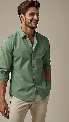 Looking at this guy, you might think he spent hours planning his awesome outfit, but surprise! It’s just a cool green shirt and some perfectly matched khaki pants. It’s like these two colors had a secret meeting and decided, “Let’s make someone look effortlessly stylish today.” He’s practically winking at us, saying, “Yeah, I woke up like this, looking this good, without even breaking a sweat trying to pick out clothes.” Who knew looking sharp could be so chill and still be totally on point for stylish men’s outfits?