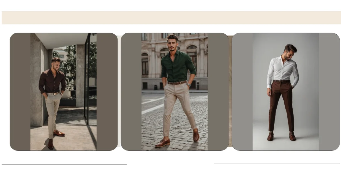 Getting this kind of polished look doesn’t mean you need to raid a fancy boutique or break the bank. What makes this one of the truly stylish men’s outfits is how effortlessly cool it comes across. It’s about knowing that a simple, well-fitting shirt in a great color, like that deep green, can do wonders. Add in some smart beige pants, slick shoes, and a cool belt, and you’re basically telling the world, “Yeah, I put some thought into this, and I look pretty awesome.” He’s basically a walking instruction manual for how to upgrade your style game without looking like you’re trying to win a fashion show (unless you are, then go for it!).