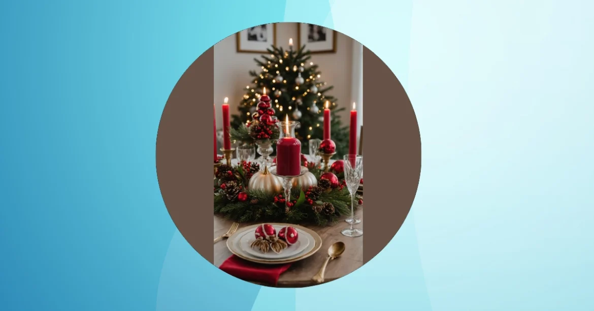 Talk about setting the mood for a holiday feast! This holiday centerpiece seriously brings its A-game, looking like it stepped right out of a glossy magazine. All those vibrant green branches, shiny red and gold ornaments, and little pinecones are basically throwing a party right there on your table. And those glowing candles? They’re not just for lighting up the room; they’re probably also doing a secret job of making everyone feel extra cozy and maybe a little less grumpy about Uncle Steve’s dad jokes. It’s so pretty, you almost don’t want to eat dinner and mess up the vibe!
