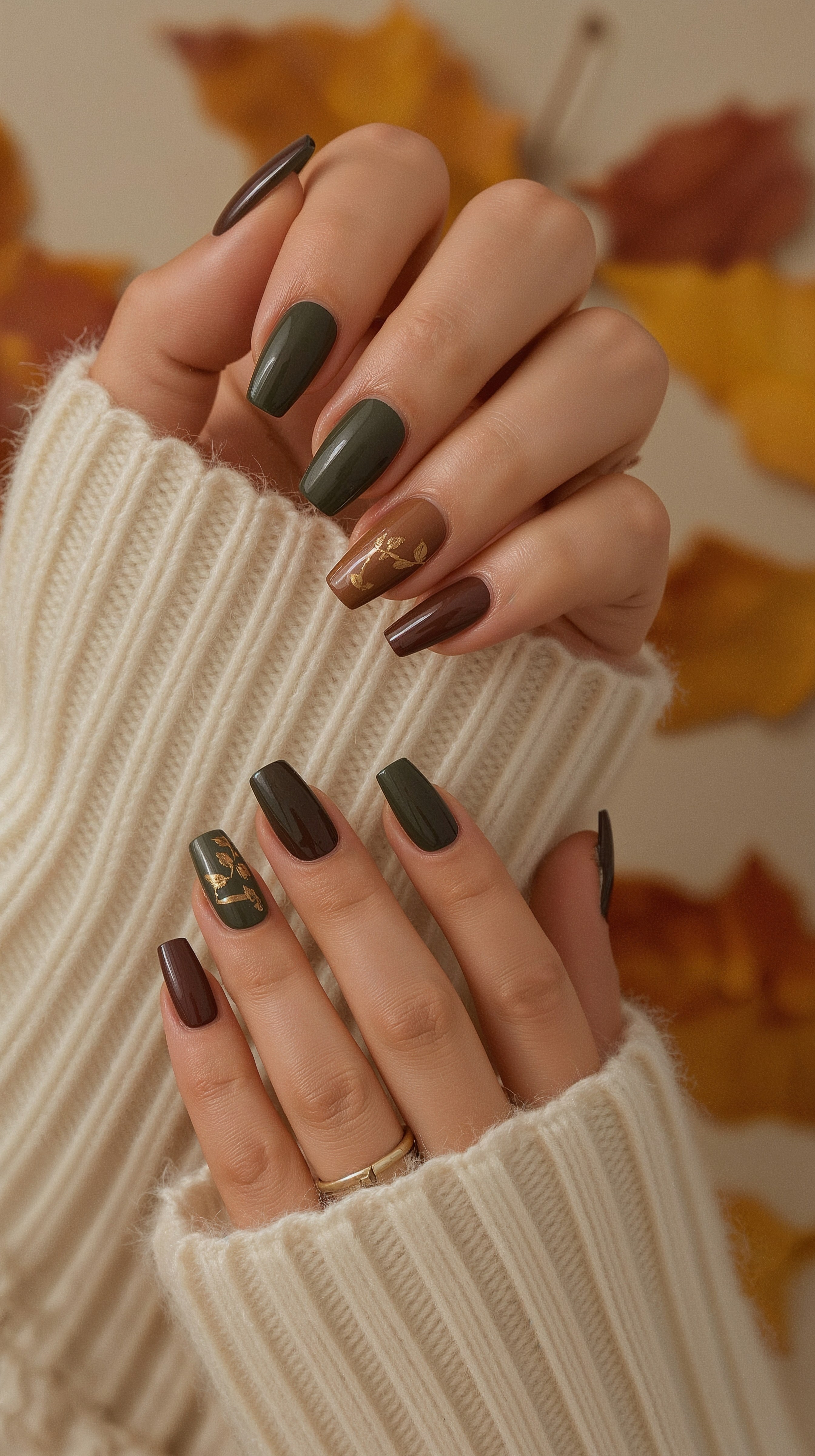 #3 Classy Green & Brown Fall Nail Designs for Square Nails 2025