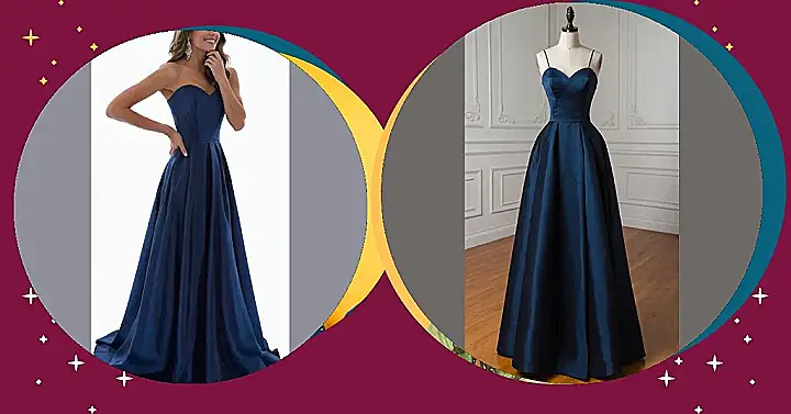 Okay, so prom 2025 is ages away, but who says you can’t start dreaming about your perfect dress now? Just look at this gorgeous navy number! It’s the kind of dress that makes you want to twirl dramatically, even if you’re just standing in your bedroom practicing your promposal acceptance speech. Plus, with that full skirt, you’ll have plenty of room to stash snacks for the dance floor – because let’s be real, dancing burns calories!