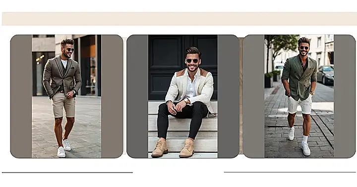 This guy looks pretty cool, right? He’s rocking a blazer with shorts, and let’s be honest, it’s a look that can be tricky to pull off. But he’s totally nailing it! It’s like he’s saying, “I’m dressed up, but I’m still ready to chill and enjoy the warm weather!” His outfit is all about mixing formal and casual styles, and that’s what makes it so unique.