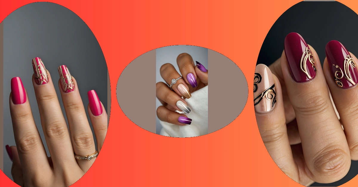 Let’s be real, sometimes long nails are amazing… until you try to open a soda can, type an essay, or just exist without accidentally poking yourself. Good news for all you clumsy but stylish humans: 2025 is totally here for short nail designs that are still super extra! Like these beauties in the picture, rocking deep maroon and chic nude shades with gold swirly bits that look like tiny, fancy jewelry. You can totally rock these intricate designs without feeling like your nails are constantly trying to stage an escape during gym class.