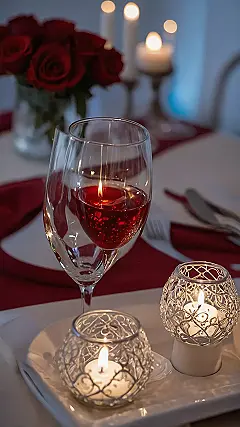 The soft, flickering glow from that single candle is practically begging for some deep conversations, or at least a good excuse to pull out your phone’s flashlight later. And those gorgeous bouquets of roses aren’t just pretty; they’re doing all the heavy lifting in the romance department, making the whole room smell super fancy and fresh. It’s the kind of setup that makes you want to put on your best outfit and pretend you actually know how to use all those different forks. Just remember, while the decor sets the scene, the real magic happens when you’re not awkwardly staring at the raspberries, wondering if they’re for eating or just admiring.