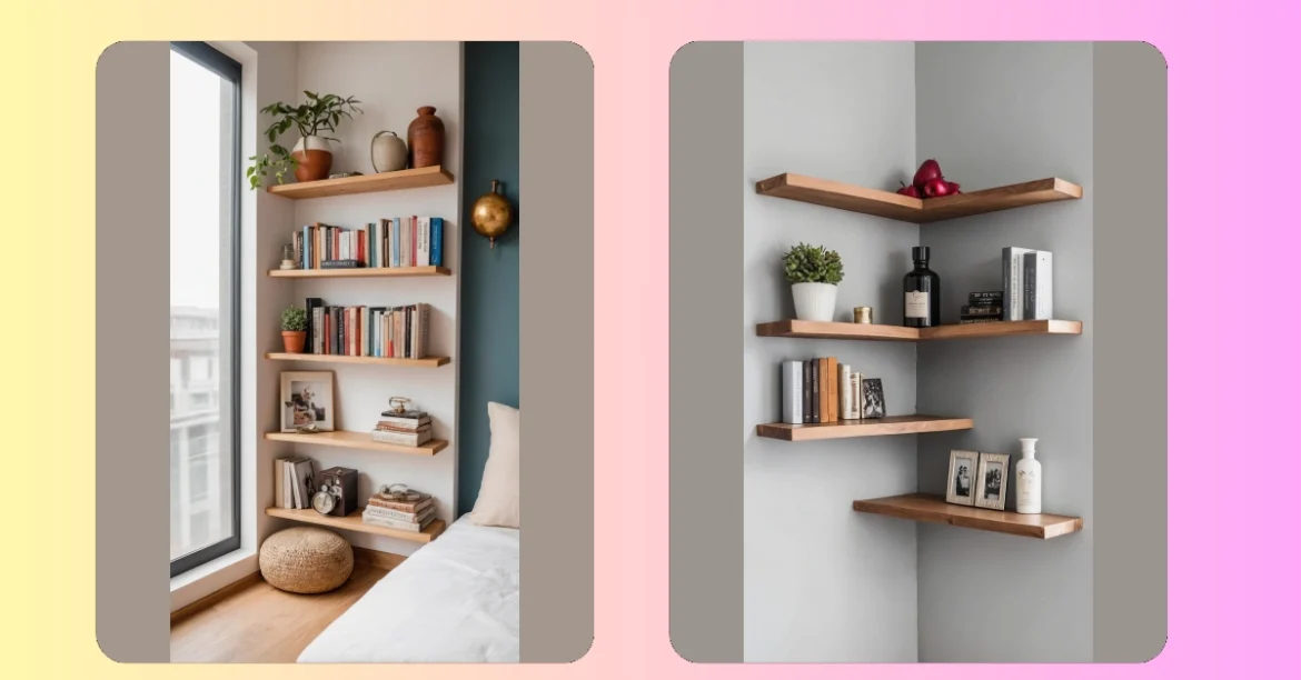 You know how sometimes a room has those totally awkward corners, just kinda chilling there, not doing much? Well, these corner shelves are like the ultimate glow-up for those neglected spaces! They magically transform a boring wall junction into the coolest display zone in the house. It’s like finding a secret superpower for your room, turning what used to be empty air into prime real estate for all your coolest knick-knacks and greenery, proving that even a corner can be a star.